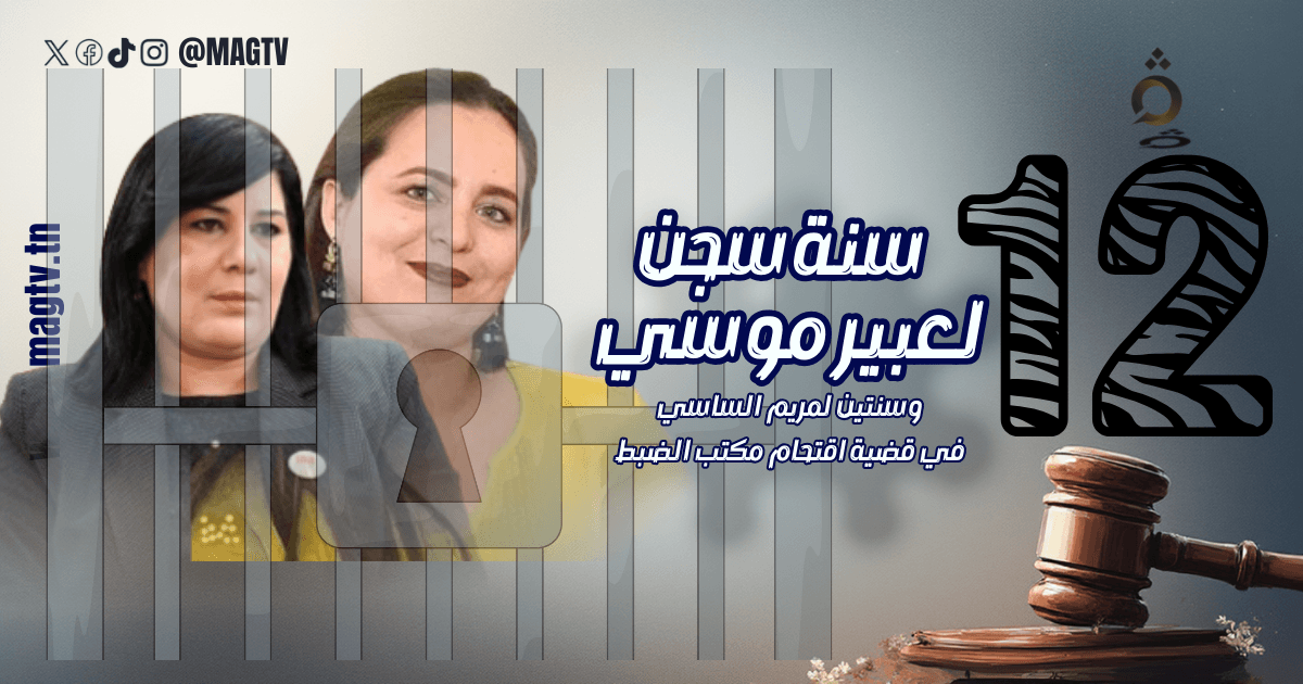 المحكمة الابتدائية بتونس قضت بسجن عبير موسي 12 سنة، ومريم الساسي سنتين، في قضية اقتحام مكتب الضبط بقصر رئاسة الجمهورية، على خلفية تهم تتعلق بتدبير الاعتداء المقصود به تبديل هيئة الدولة. القضية تعود إلى تحركات احتجاجية سياسية داخل فضاء رسمي، والأحكام تبقى قابلة للطعن وفق المسارات القانونية.