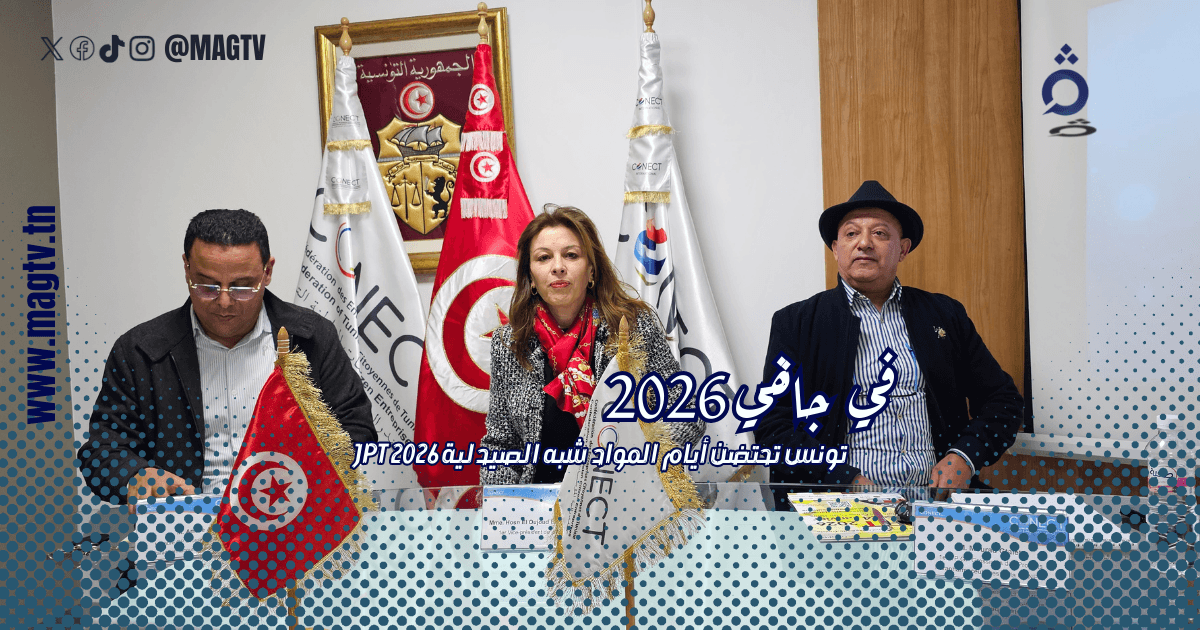 تستعد تونس لاحتضان فعاليات أيام المواد شبه الصيدلية – JPT 2026، التي ينظمها المجمّع المهني لموزعي المواد شبه الصيدلية بالجملة التابع لمنظمة الأعراف كونكت (CONECT)، يومي الجمعة 23 والسبت 24 جانفي 2026 بقصر المؤتمرات بتونس العاصمة، تحت شعار: