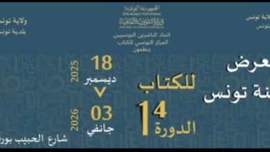 تتواصل فعاليات الدورة الرابعة عشرة لمعرض مدينة تونس للكتاب من 18 ديسمبر 2025 إلى 3 جانفي 2026 بشارع الحبيب بورقيبة،…